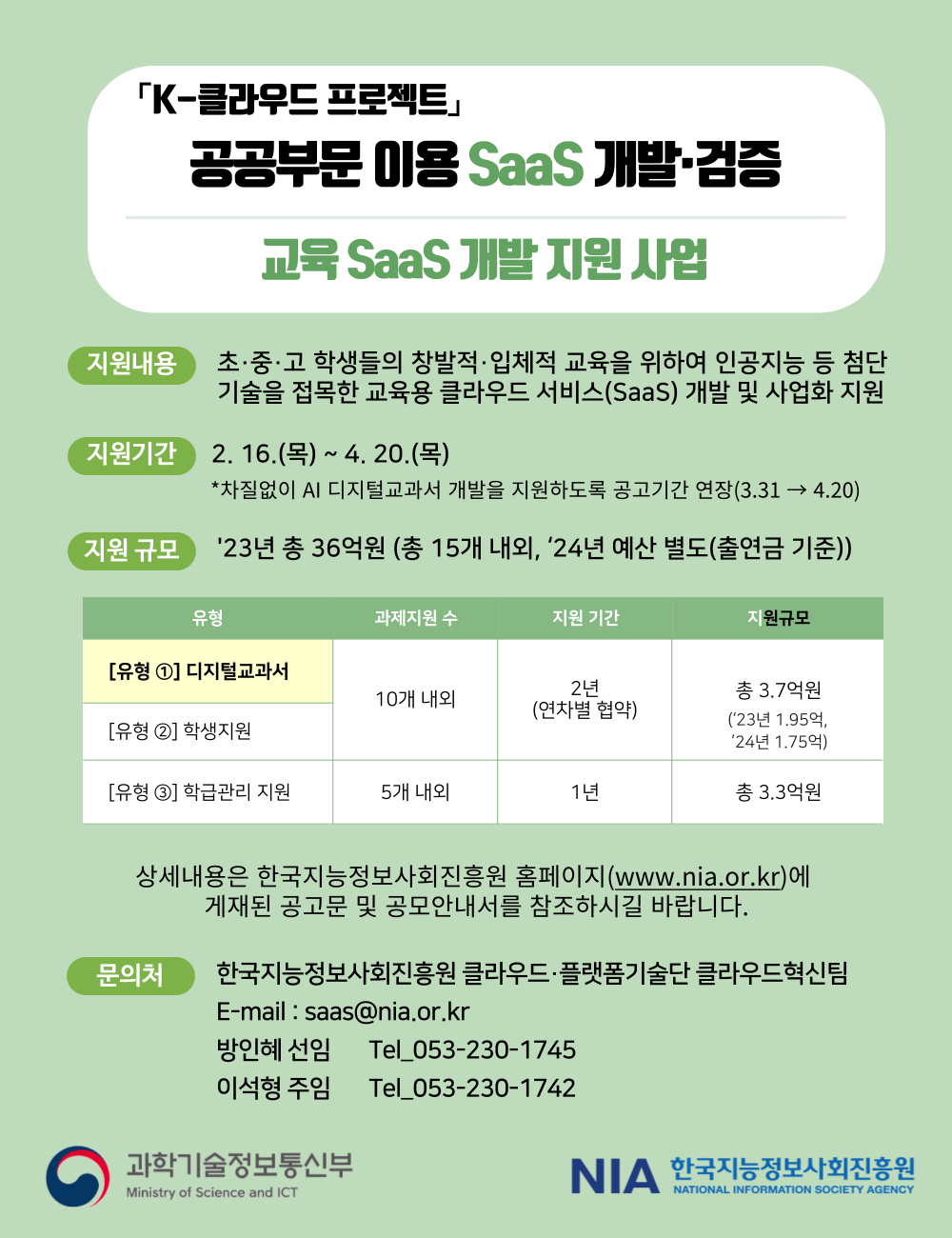 공공부문 이용 SaaS 개발·검증(교육SaaS트랙)' 모집 공고(~4.20, 연장)