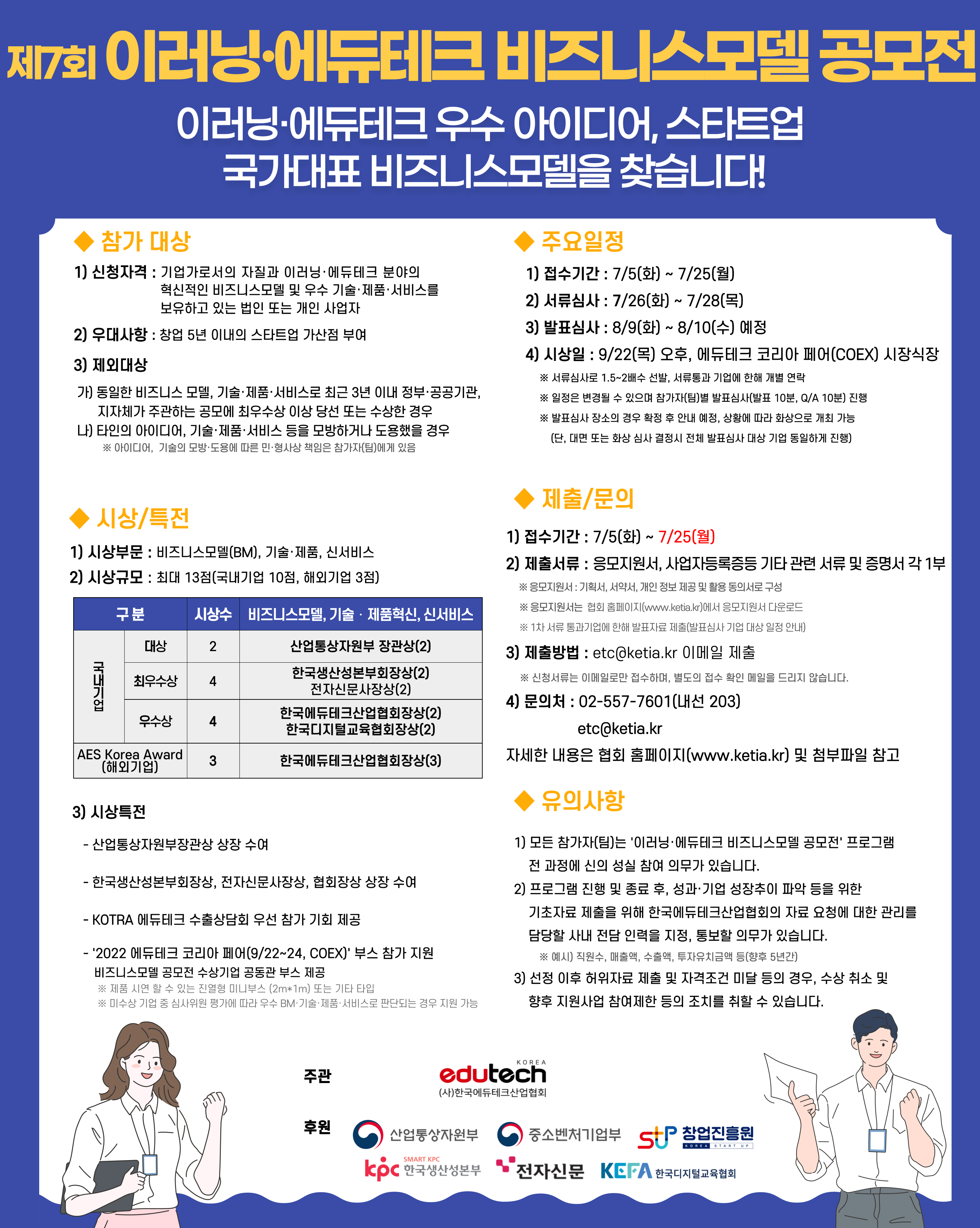 [한국에듀테크산업협회] 제7회 이러닝·에듀테크 비즈니스모델 공모전 안내