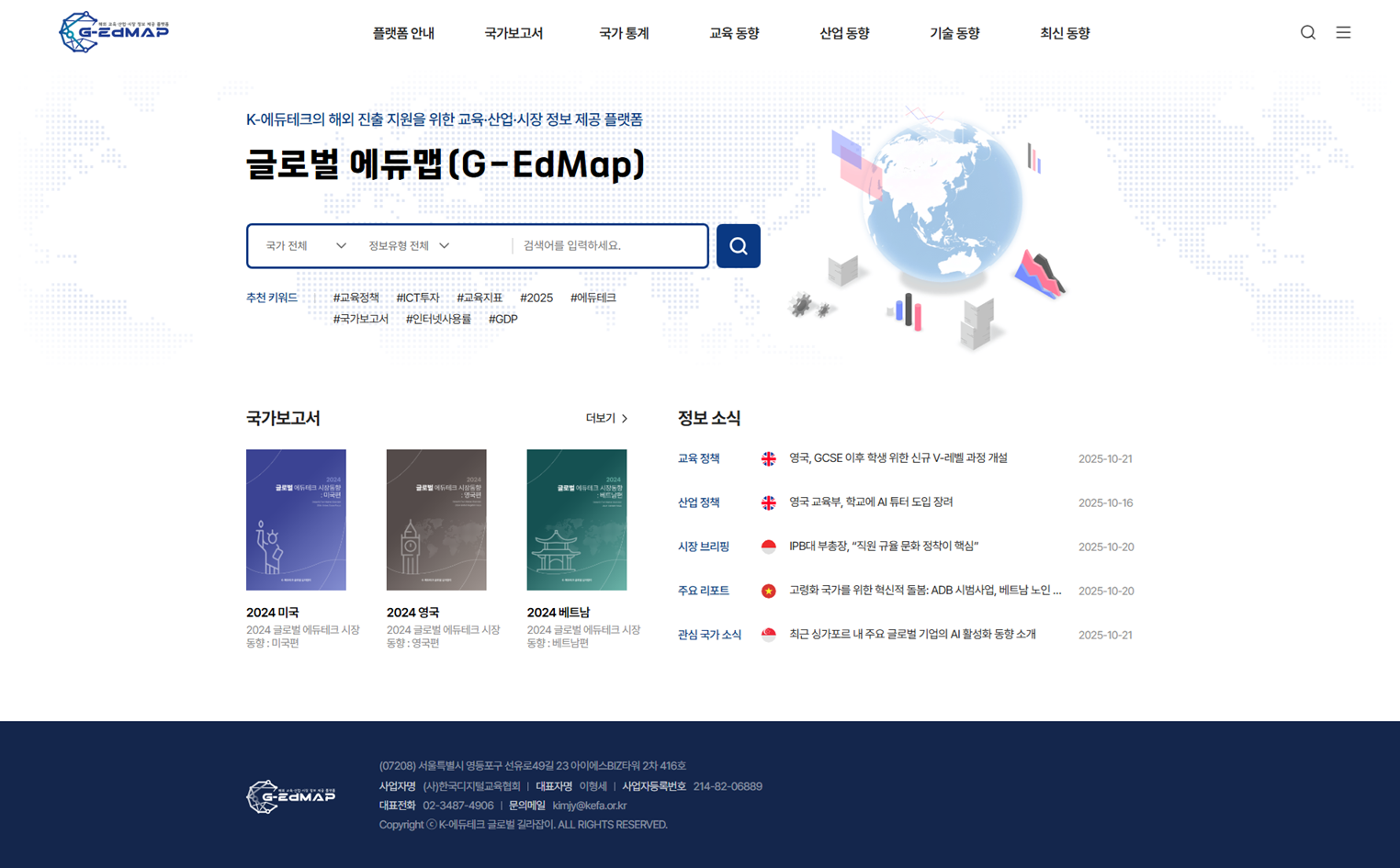 EdTech Information Platform for Major Target Countries collects and provides localized education policy, market trends, and industry insights to help Korean EdTech companies expand globally.